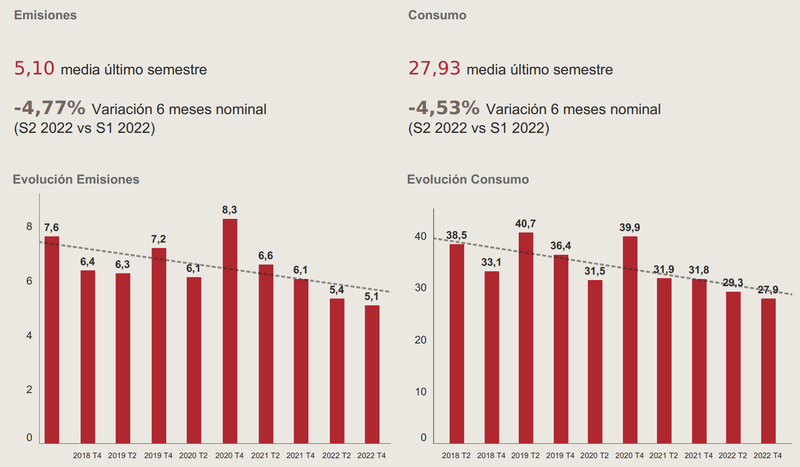 A su vez, el consumo medio durante estos últimos seis meses se ha establecido en 27,9 kWg/m2/año, lo que supone un descenso del 4,53% respecto al primer semestre de 2022. A su vez, las emisiones se han situado en 5,10 kg CO2/m2/año durante el mismo periodo de tiempo, tras registrar una sensible bajada del 4,77% durante el último semestre. Los resultados de este análisis reflejan una reducción generalizada tanto en las emisiones como en los consumos de las obras iniciadas durante la segunda mitad del año.