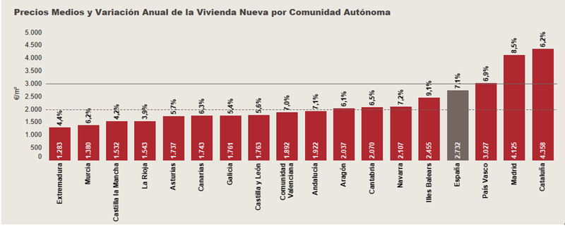 El precio de la vivienda nueva sube un 7,1% durante el último año hasta 2.732 €/m2