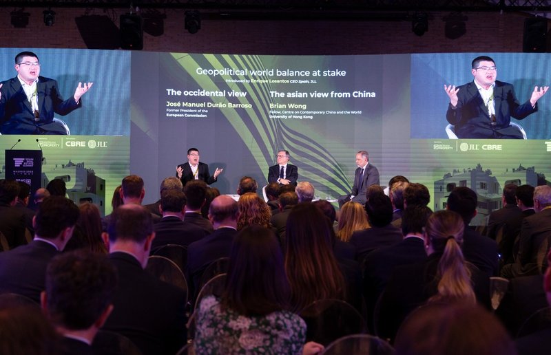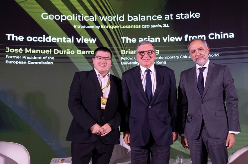 La mesa “Geopolitical world balance at stake”, moderada por Enrique Losantos, CEO de JLL España, ofreció una reflexión profunda sobre los equilibrios de poder a nivel internacional, con intervenciones de José Manuel Durão Barroso, expresidente de la Comisión Europea, y Brian Wong, fellow del Centre on Contemporary China and the World de la Universidad de Hong Kong.
