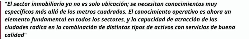 El directivo enfatizó la importancia de integrar un conocimiento operativo especializado, especialmente en sectores en expansión como los centros de datos, donde factores como la regeneración urbana y la creciente demanda de entornos urbanos de calidad están cobrando un peso cada vez mayor en las estrategias de inversión y desarrollo.