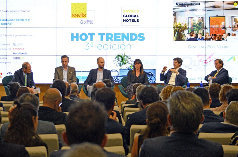 29 de mayo de 2019.- Savills Aguirre Newman ha organizado, dentro de su programa HOT TRENDS, la mesa redonda "Nuevas realidades en la distribución hotelera y perspectivas del sector en España", que ha contado con la participación de CEHAT, Destinia, Hotelbeds, HotelsDot y ATIR. En el evento se han presentado las nuevas realidades de la distribución hotelera en el mundo y se han analizado las perspectivas del sector en España.